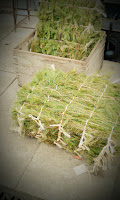 Dörrmattor bundna av granris, riktigt dekorativa, julgrupper, Amaryllis, Hyacinter, mossa, kottar.