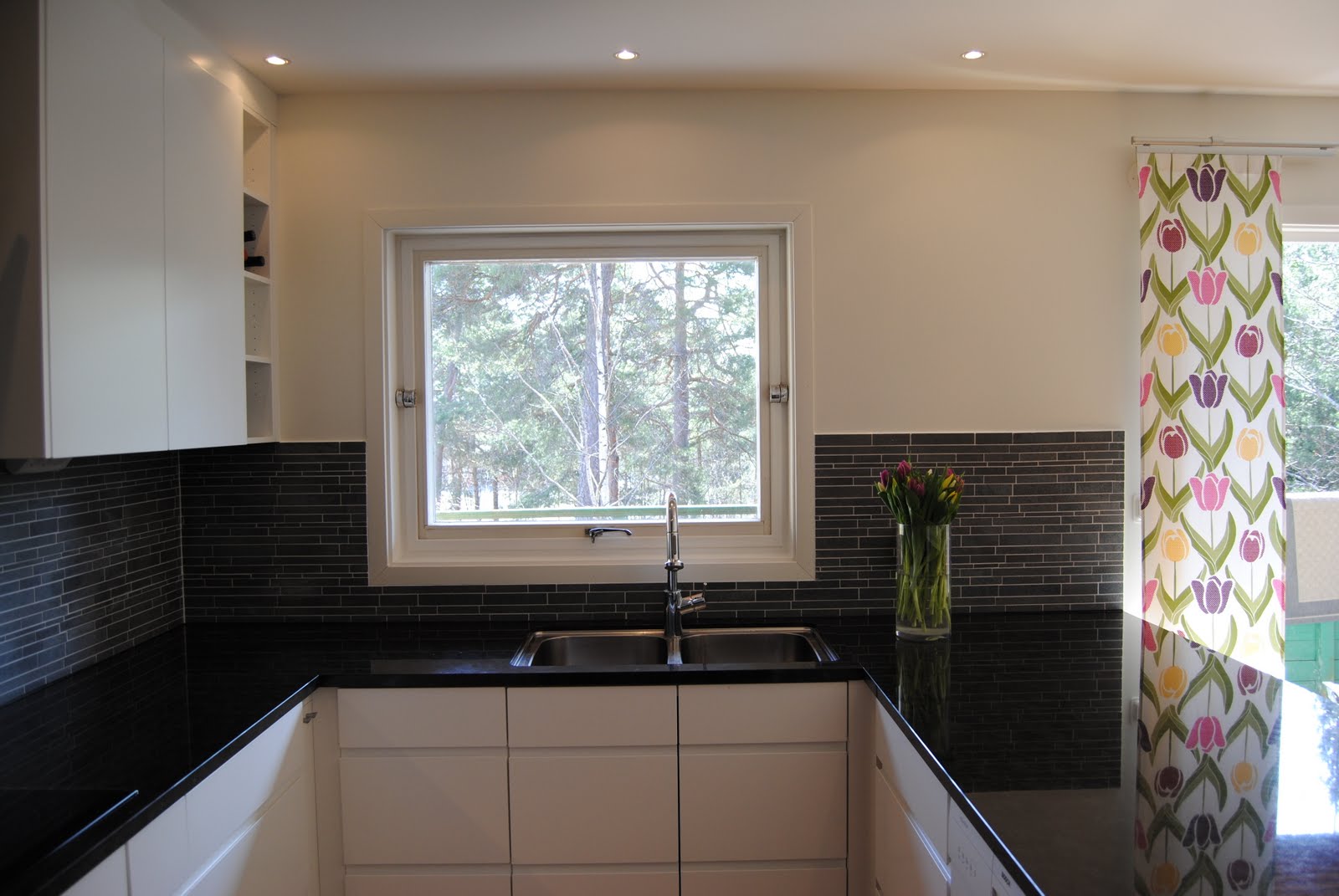 Det blev ett kök i svart och vitt. Ett bra val när det är många beslut som ska tas på kort tid.