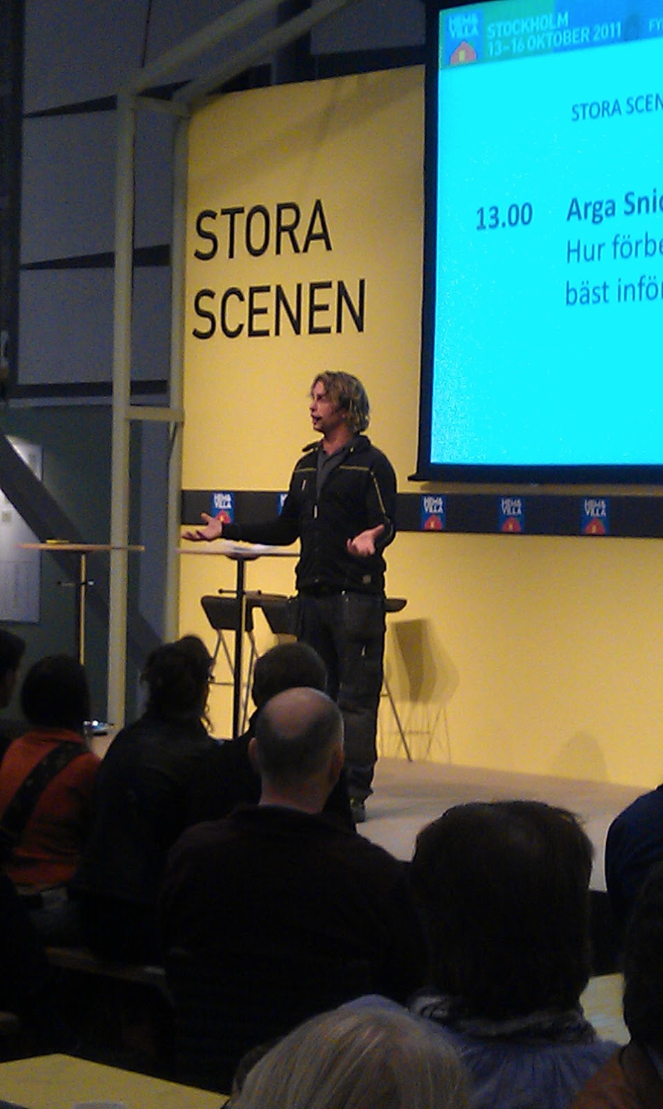 Han gav tips vad som kan behövas göras innan vintern. Sätt upp snöskydd på taket och ha gärna gymnastikskor på, så minskar risken för att ni ska trilla ner och använd gärna även lina om ni ska upp på taket. Ta gärna en titt på takpannorna och byt ut de som är trasiga och kontrollera att pappen under ser okey ut. (Går det att göra från vinden så underlättar detta! 🙂 ) Rensa alla stuprör och städa på tomten är alltid bra innan vintern, typ ta in högtrycktvätten. Han berättade att 9 av 10 som han besökte hade en högtryckstvätt som stod ute och skräpade helst hela vintern. Ingen ekonomi i det inte!